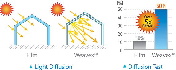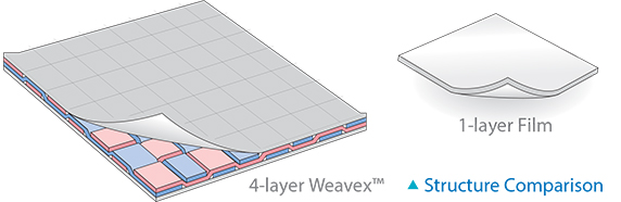 Incredible transparency when compared to thinner films. Even being 30% thicker, Weavex™ has nearly the same light transmission rate.
